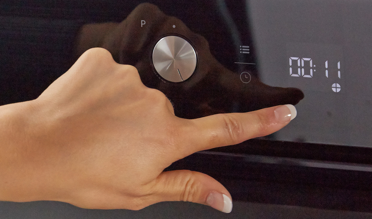 For a sleek and stylish finish, the oven's knobs can be pushed in and popped out. When pushed in, the resulting smooth surface on the glass panel enables it to be easily cleaned after use.